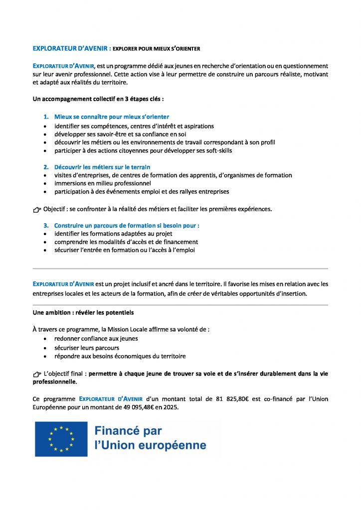 - Un programme de 15 à 20 heures par semaine composé de différents types d'activités pour découvrir le monde professionnel, définir et bâtir un projet durable ;